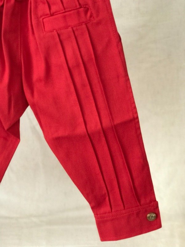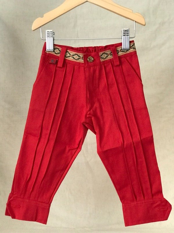 Bombacha de campo con guarda pampa en cintura, bolsillos laterales y bolsillo ojal trasero, cremallera con cierre, elástico en cintura media para mayor comodidad del bebé. Motivo de guarda pampa puede llegar a variar sutilmente según disponibilidad. Tela: Gabardina 100% algodón.