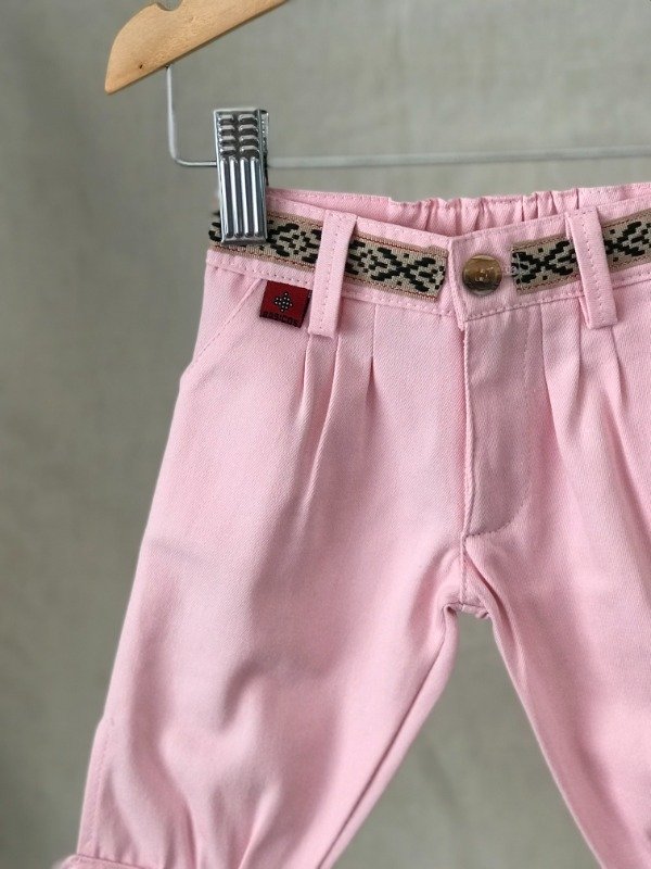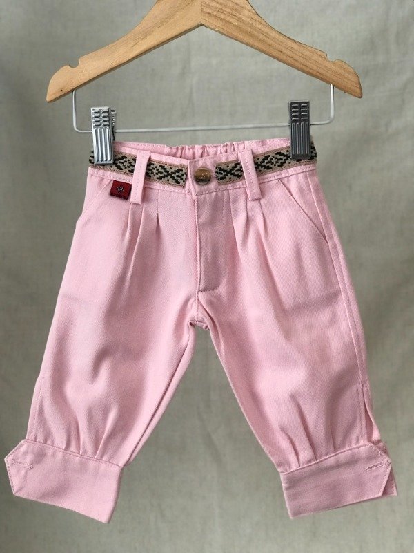 Bombacha de campo con guarda pampa en cintura, bolsillos laterales y bolsillo ojal trasero, cremallera con cierre, elástico en cintura media para mayor comodidad del bebé. Motivo de guarda pampa puede llegar a variar sutilmente según disponibilidad. Tela: Gabardina 100% algodón.
