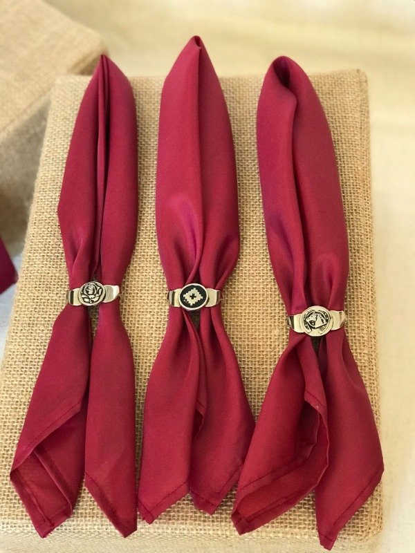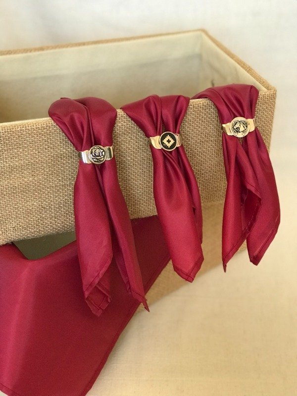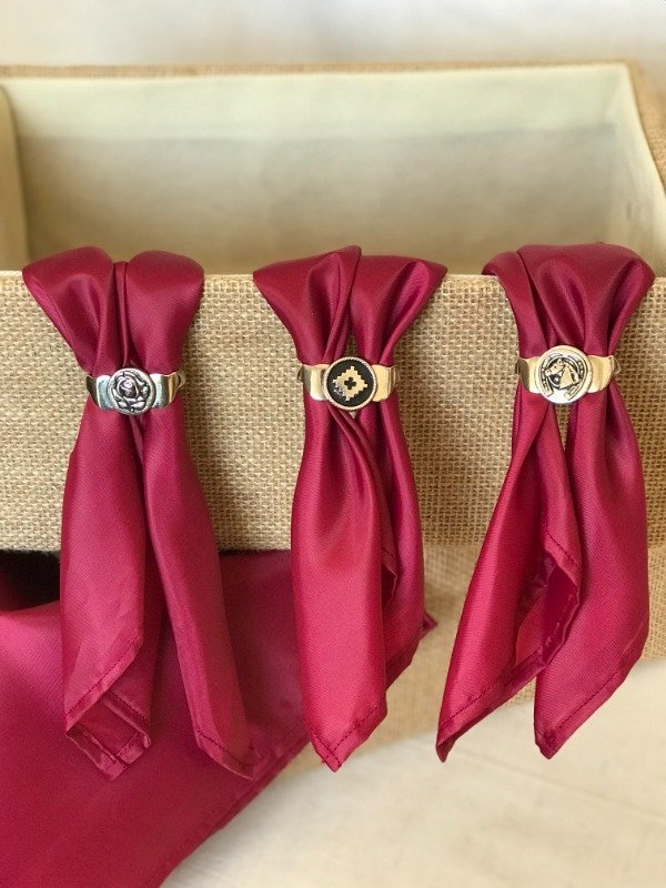 Incluye pasapañuelo doble anillo varios modelos que se enviá de manera aleatoria entre flor de liz, caballo, flor, etc.