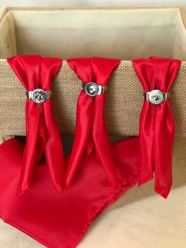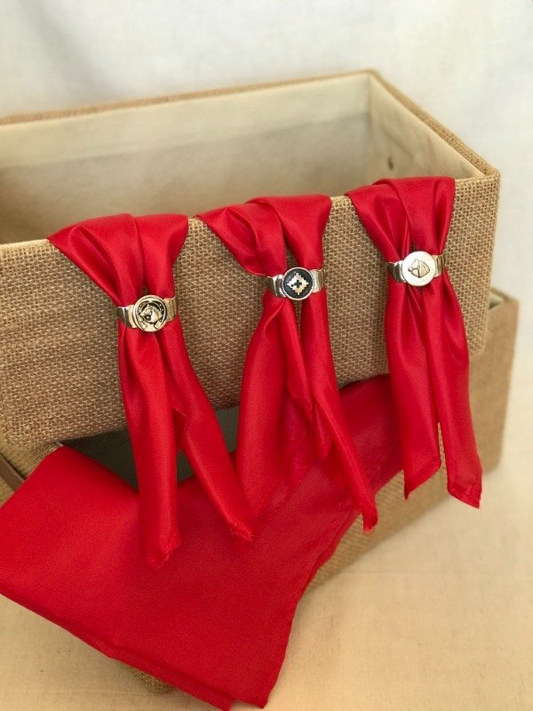 Hechos con suave tela liviana y terminaciones delicadas, estos pañuelos gauchos son el toque perfecto para completar el look campero de los más chiquitos. Acompañados por pasapañuelos con diseños criollos, combinan tradición y ternura en una misma prenda.